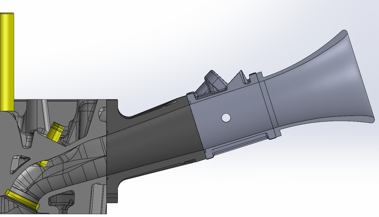 From port to throttle body there is no compromise on the blend of the shape. Fully tapered from cylinder head to throttle body, no sharp transitions, not straight bottlenecks.